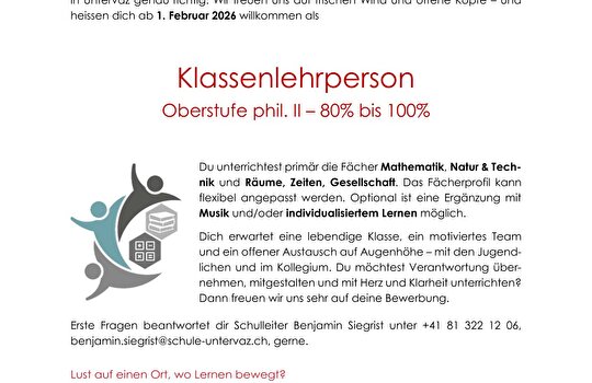 Stellenausschreibung Klassenlehrperson Oberstufe p...